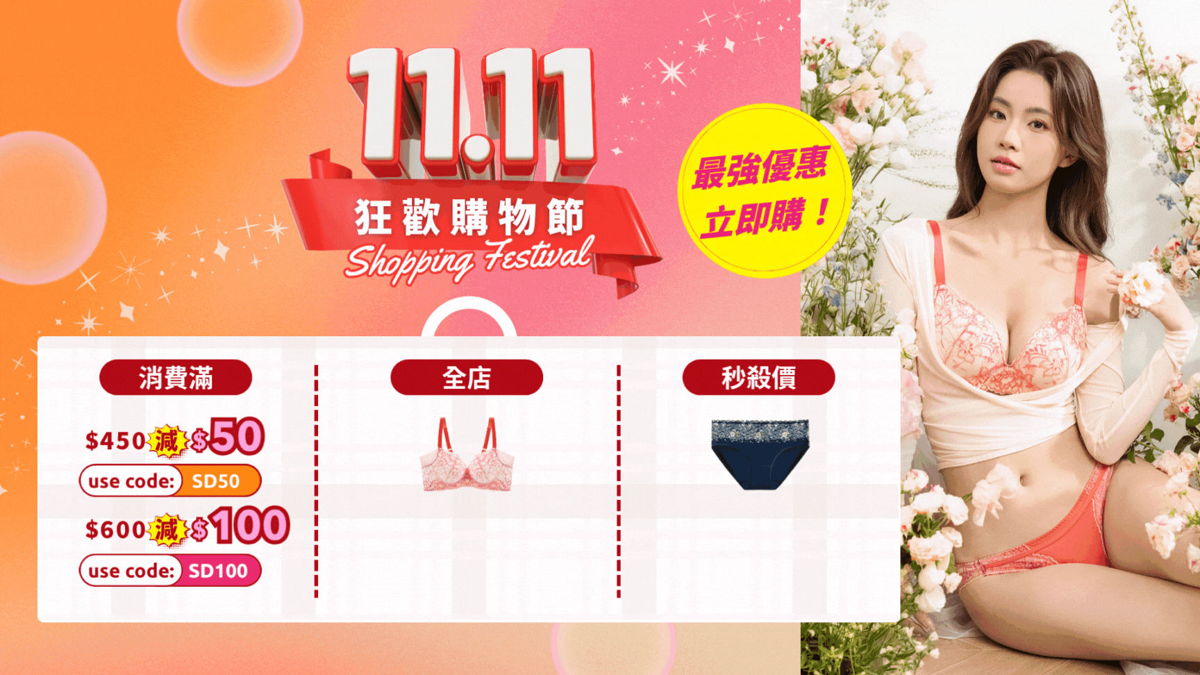 限時買滿$600 輸入「SD100」即減$100限時買滿$450 輸入「SD50」即減$50