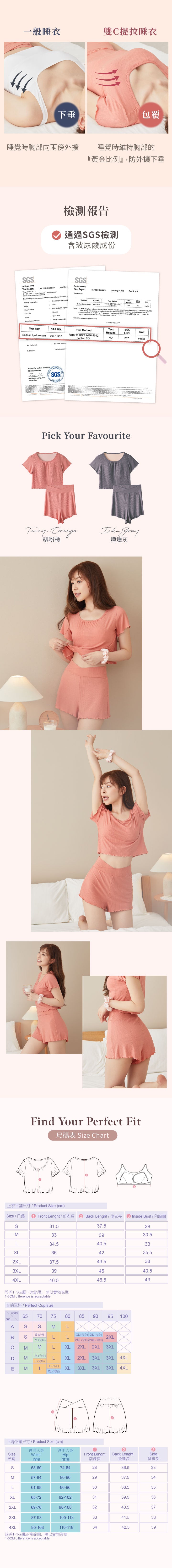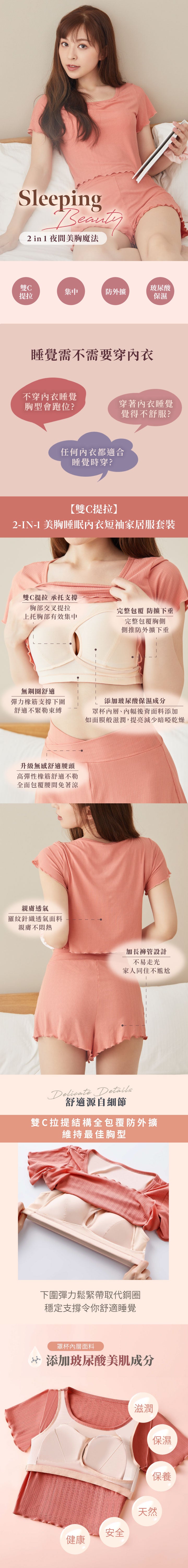 【雙C提拉】2-IN-1 美胸睡眠內衣短袖家居服套裝