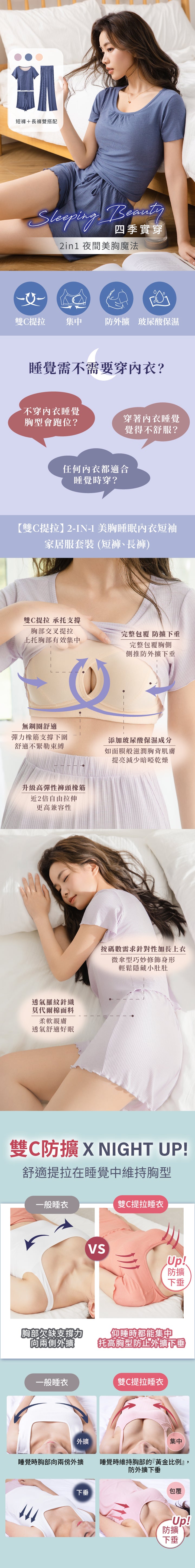 2. 雙C交叉提拉剪裁:左右交叉結構精準提托胸部,對抗地心吸力,無論任何睡姿都能維持胸型不走樣,全天候支撐黃金比例。