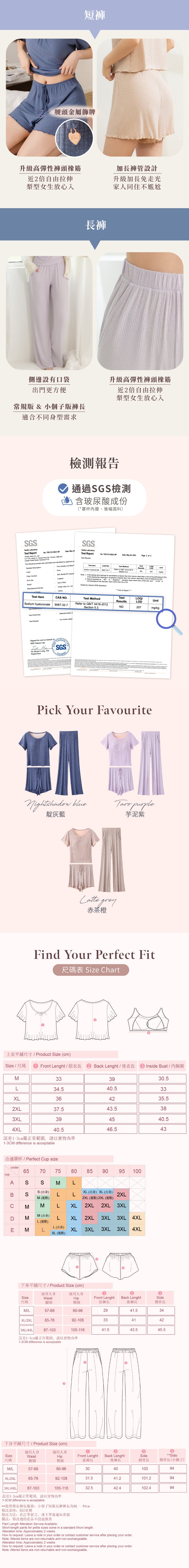 模特兒 Star 穿著尺碼:胸圍L尺碼(75C),內褲M碼,本家居服穿 L尺碼