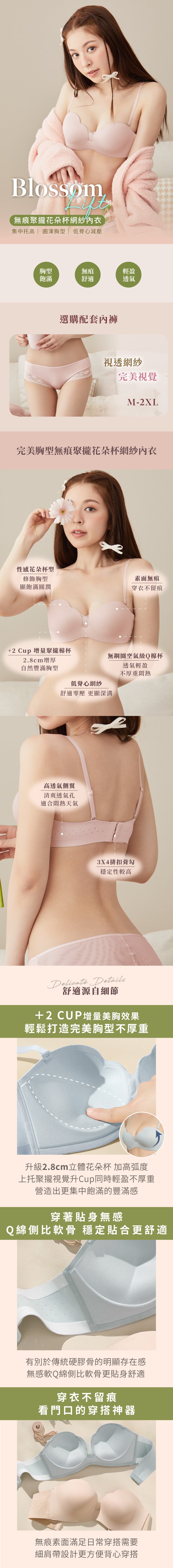 【BlossomLift】完美胸型無痕聚攏花朵杯網紗內衣褲套裝