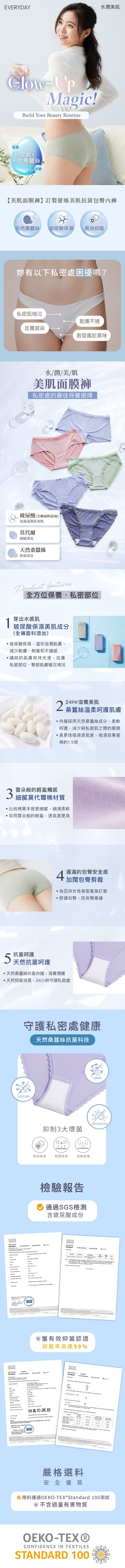 3. 全褲面料添加玻尿酸保濕成分,溫和滋潤肌膚,減少乾癢、刺激和不適感,讓妳的肌膚保持光滑,改善私密部位、臀部肌膚暗沉情況