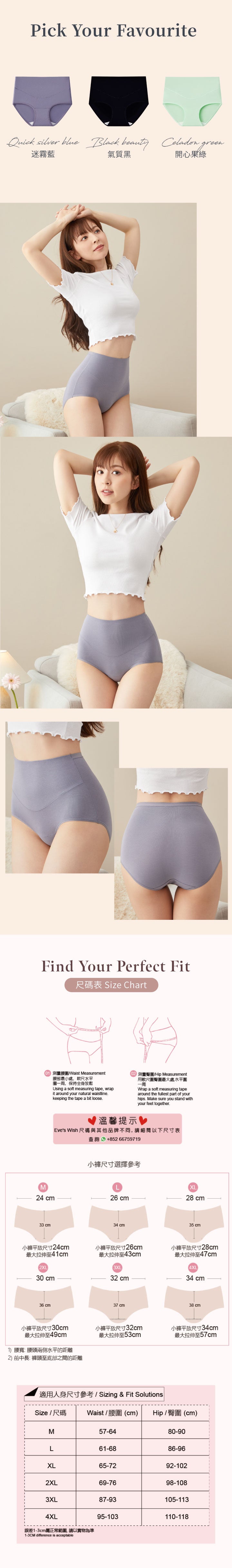 1. 升級加高3.5cm* 高腰加寛收腹版型,達至最佳收腹包覆力