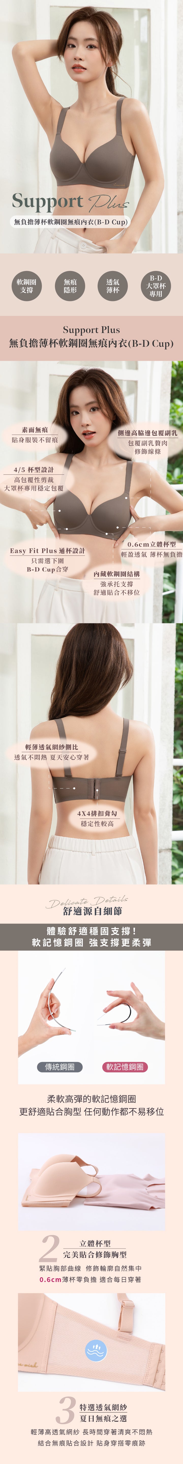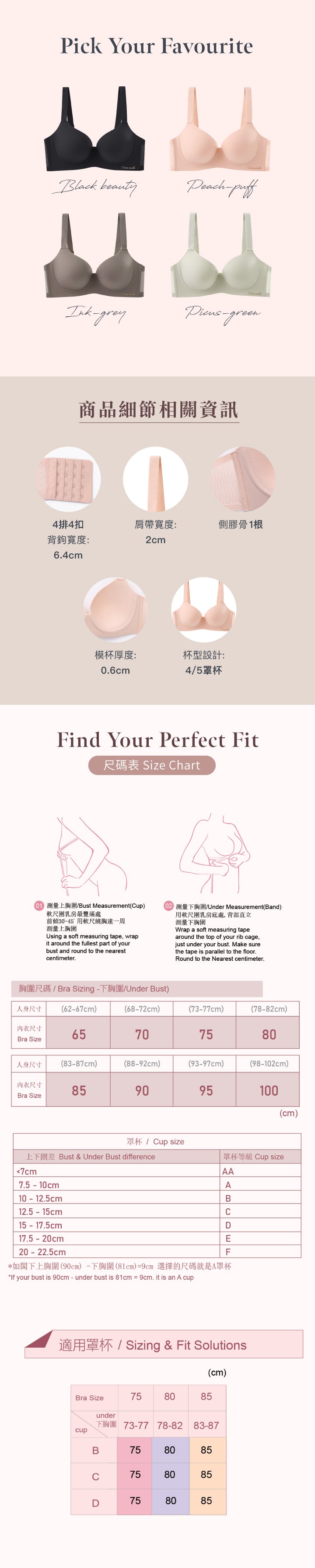 7. Easy Fit Plus 通杯設計:只需選擇下圍尺寸,B-D Cup合穿,減少選碼困擾。