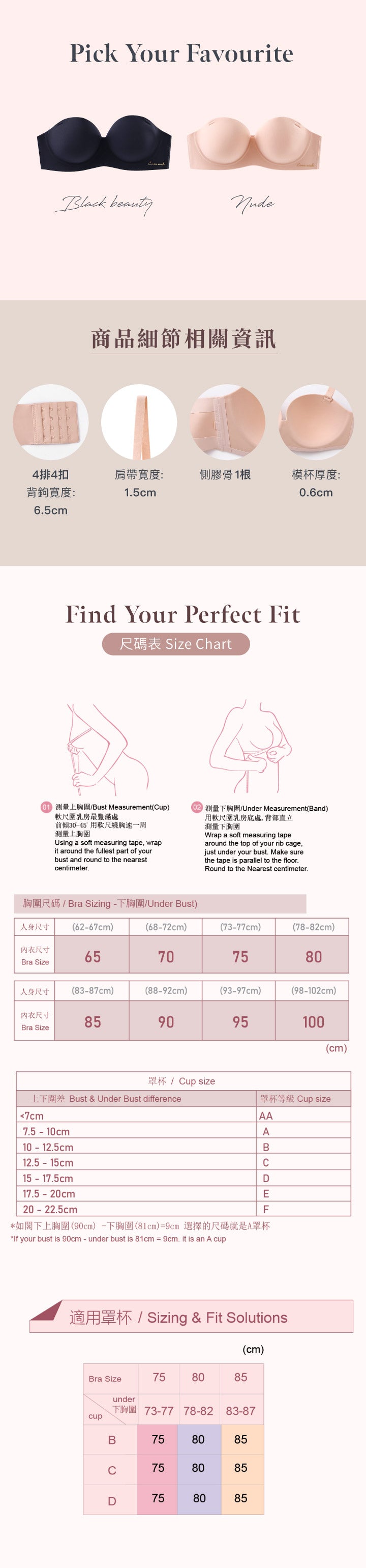 7. Easy Fit Plus 通杯設計:只需選擇下圍尺寸,B-D Cup合穿,減少選碼困擾。