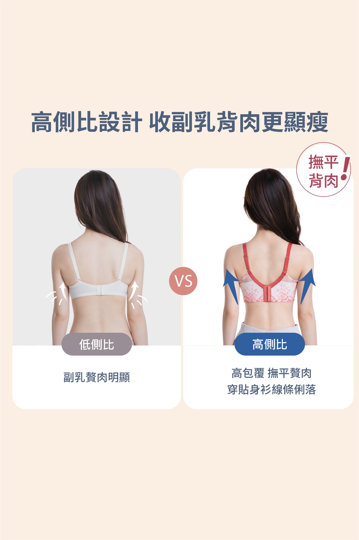 減少對胸骨的壓迫感,特別適合有雞胸困擾的女生,塑造自然深 V 事業線。