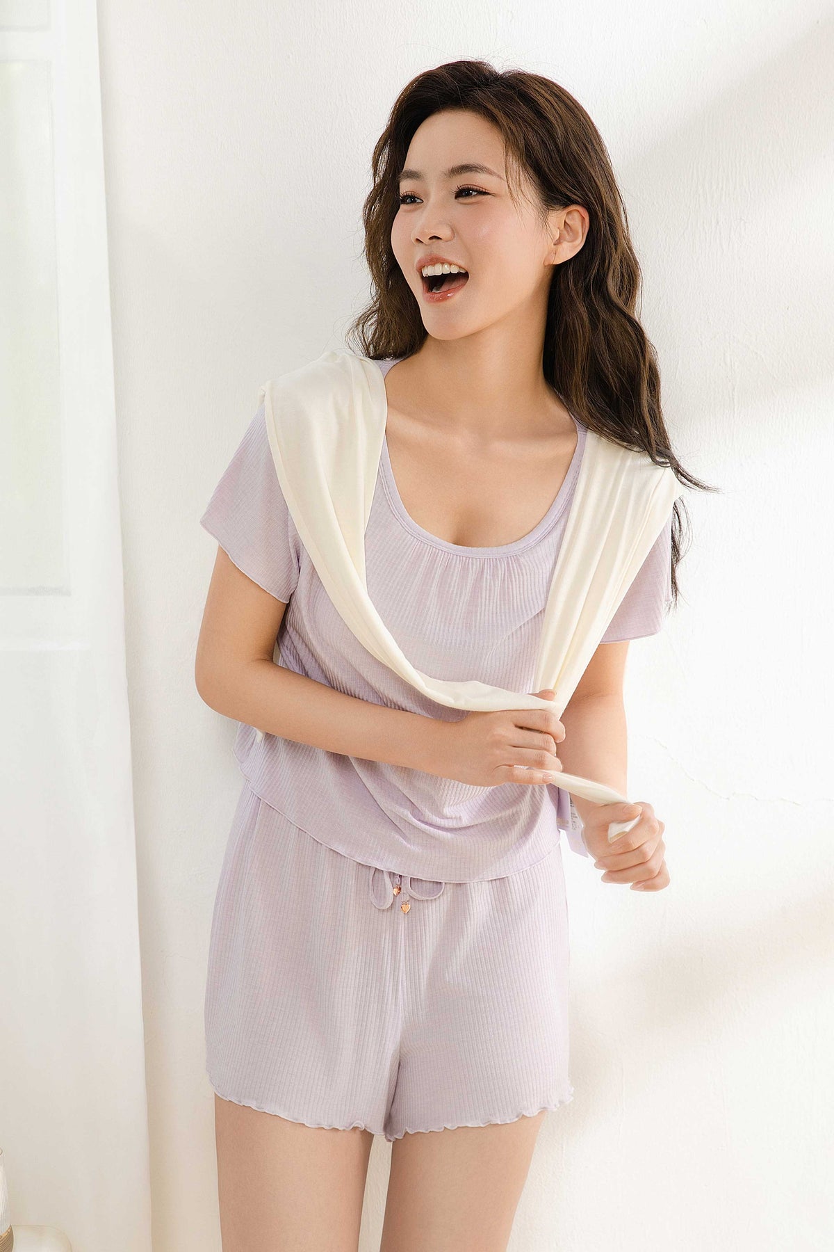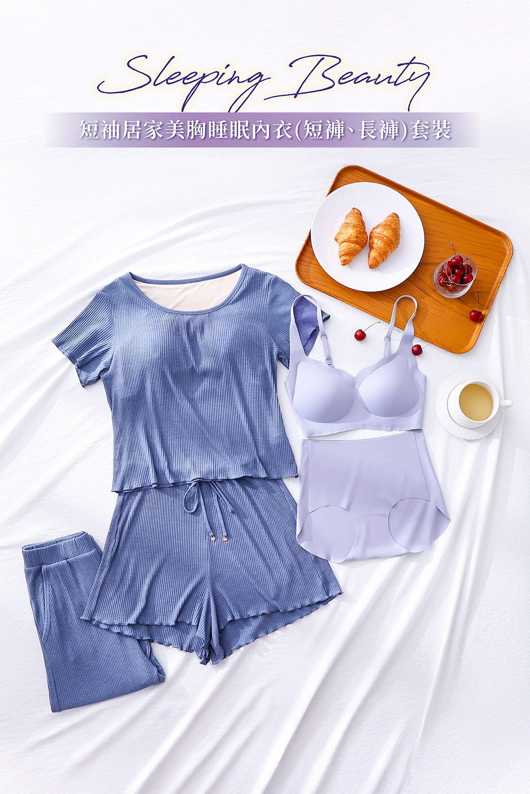 -【雙C提拉】2-IN-1 美胸睡眠內衣短袖家居服套裝 (短褲、長褲)