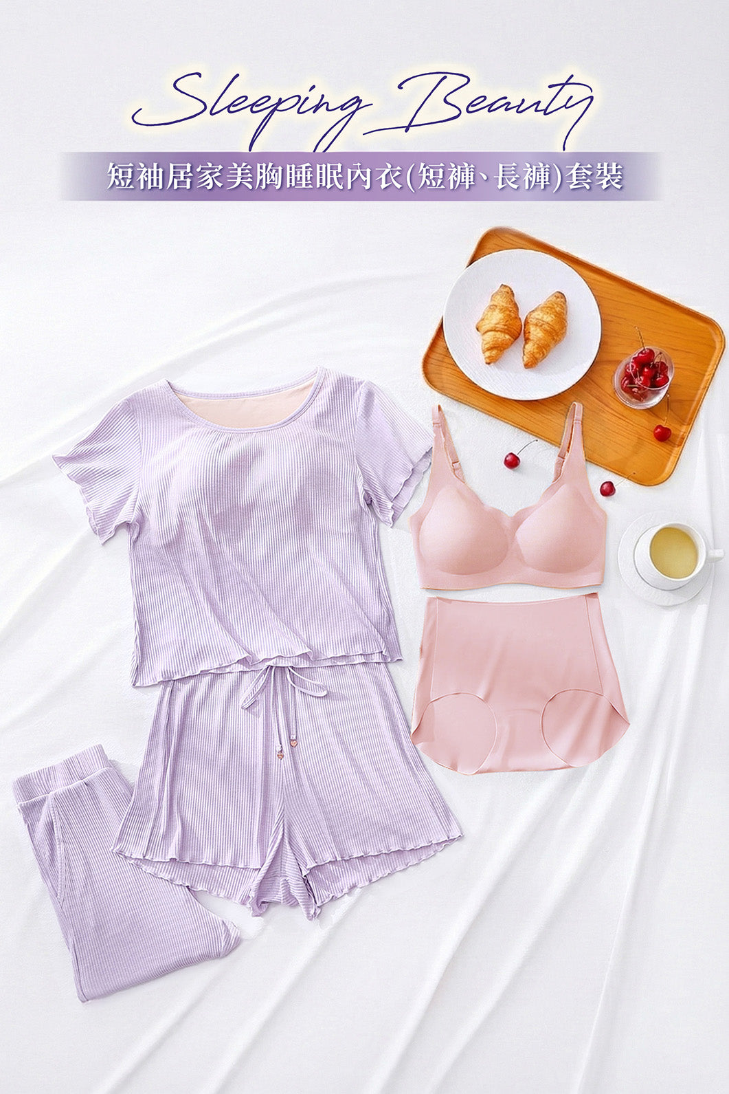 【雙C提拉】2-IN-1 美胸睡眠內衣短袖家居服套裝 (短褲、長褲)
