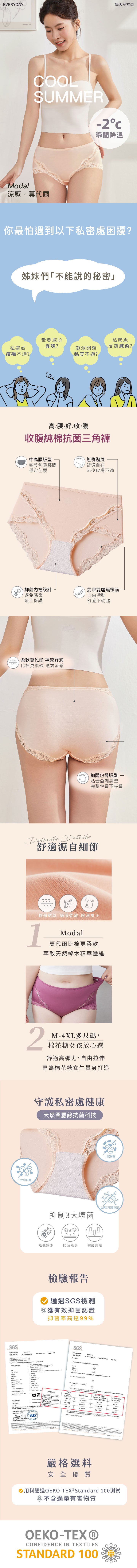 內襠: 84.1%棉,7%桑蠶絲,2.7% 聚酯纖維,4.7%錦綸