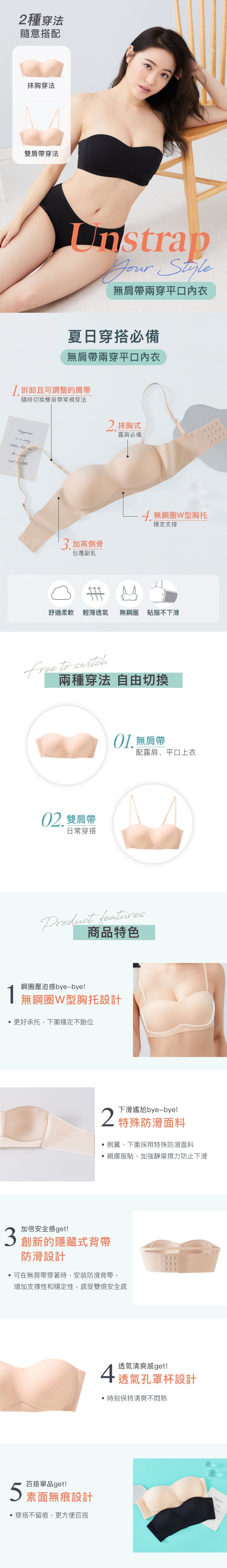 1. 平口抹胸式設計,適合無肩帶穿著,用作露肩、平口上衣配搭,夏天必備