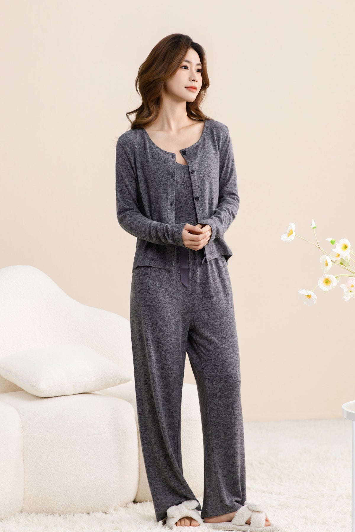 Home should also be full of elegance and charm! Reject sloppiness.Fashion three-piece design, not only good-looking when worn outside, but also allows you to feel comfortable at home. Practical and multifunctional. Soft and cozy to the skin.