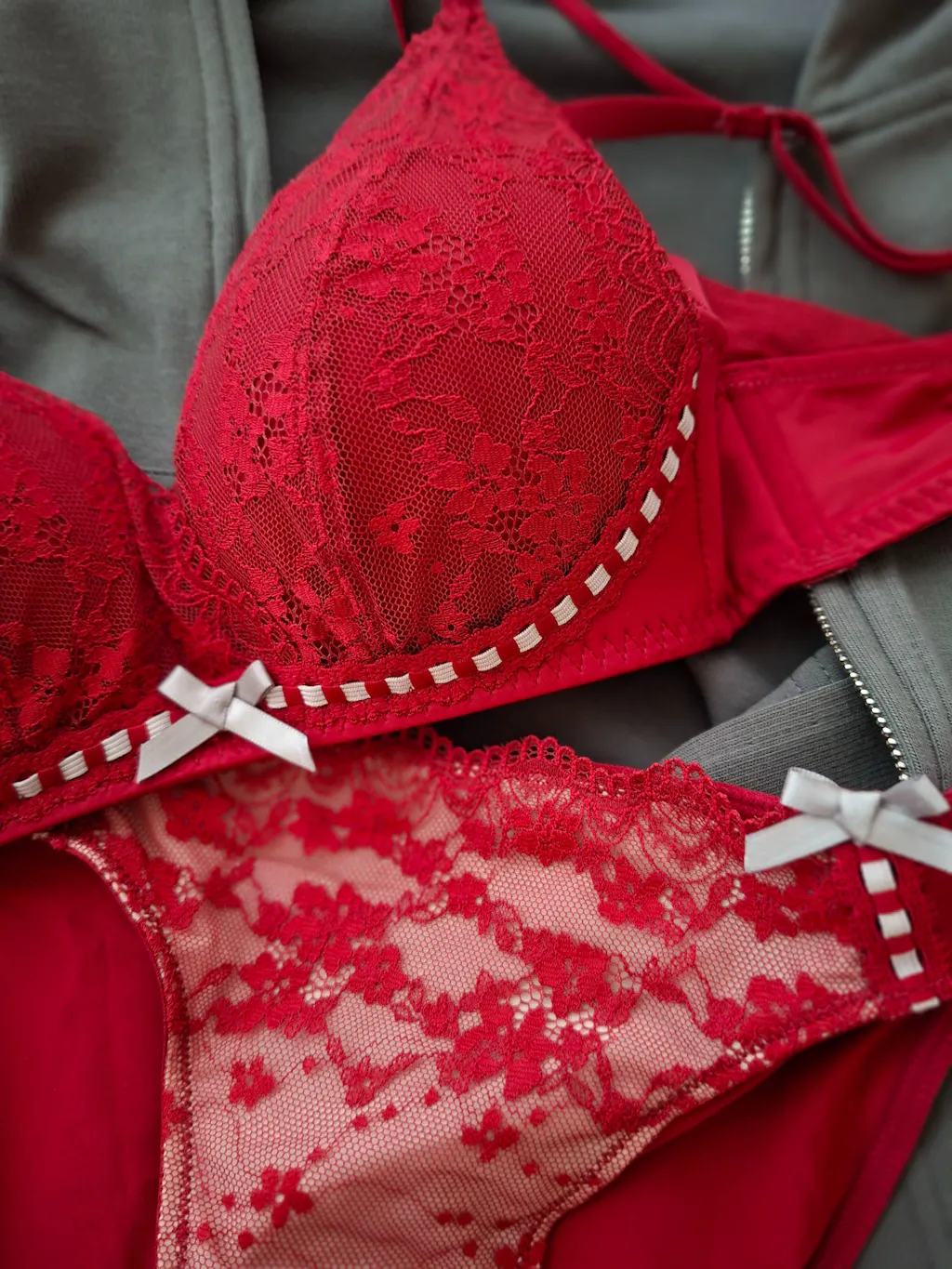 【Midnight Ribbon Lace】Wireless Midnight Romance Ribbon Lace Bra & Panty Set